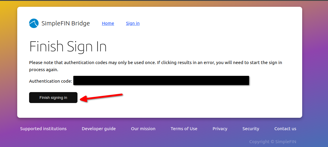 Create an account with SimpleFIN Bridge - https://beta-bridge.simplefin.org/ , by clicking "Get Started" and entering your email address.