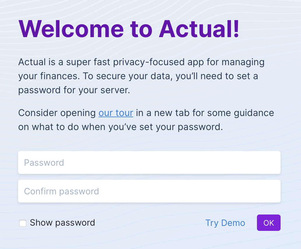 You can now visit your very own instance of Actual by opening the link on the last line of the output.