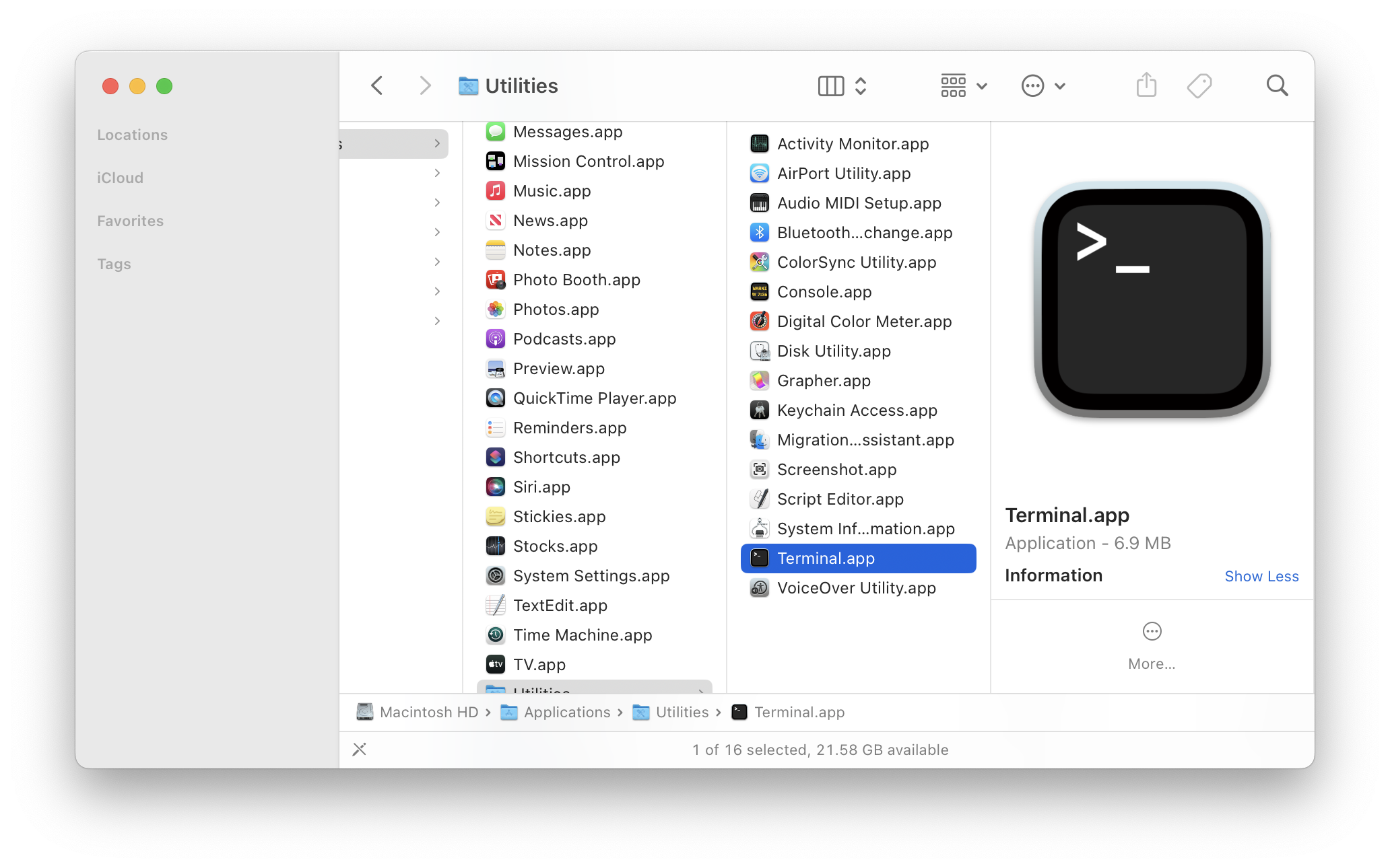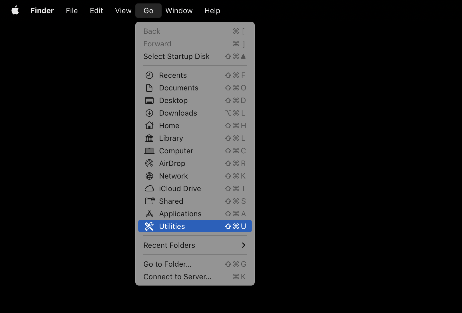 In the Finder, choose “Go → Utilities” from the menu bar.